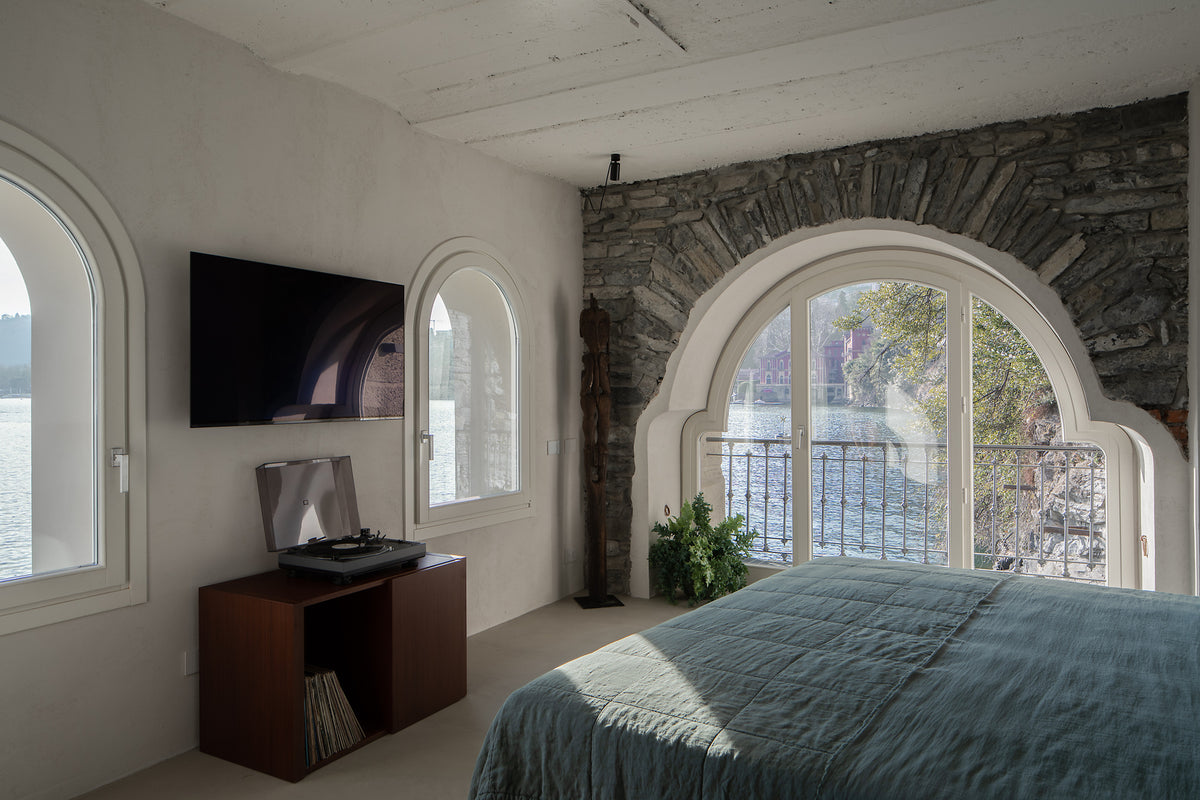 After the renovations by the current owners, this former boathouse has become the perfect destination for a romantic getaway. Following the clients’ desires, Society, with its interior design services for both private and contract projects, has furnished Lakequeen’s bedroom and bathroom eflecting indoors the iridescent colours of the Lario waters.