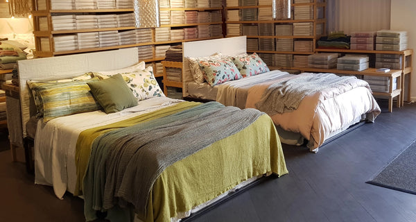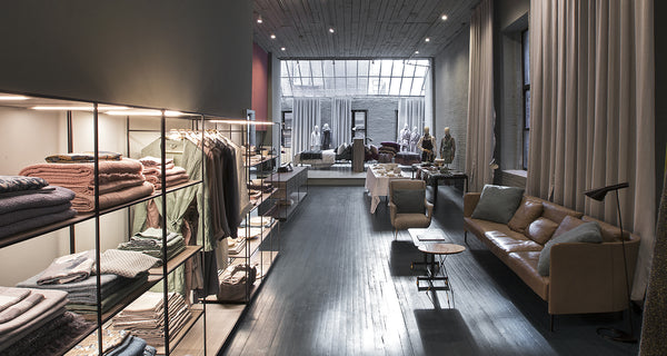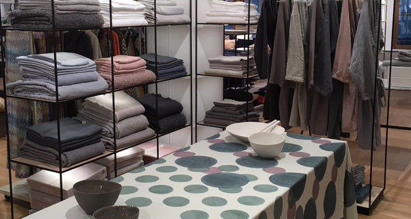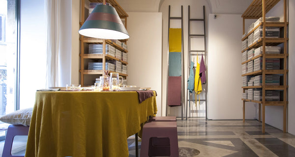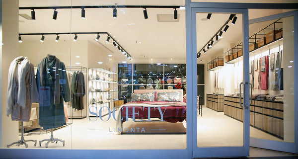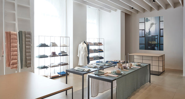 Die Gestaltung der Society Limonta-Geschäfte, allen voran des Mailänder Flagship-Stores in der Via Palermo 1, ist der Kreativität des Architekten Ferruccio Laviani zu verdanken, in dessen Räumen die Textilien die absolute Hauptrolle spielen. Die Wahl natürlicher Materialien, Holz und Stein, in hellen Farbtönen, unterstreicht die Materialität der Stoffe und die Farben der Kollektionen.